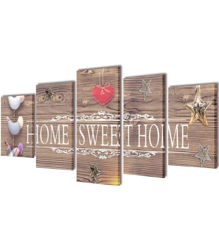 Ce jeu de peinture sur toile à 5 panneaux sera idéal pour décorer votre salon, salle à manger, chambre à coucher, etc. Fabriqué en toile de haute qualité, cet ensemble d'impression murale est imperméable et facile à nettoyer. Grâce à l'impression « home sweet home », cet ensemble d'impression murale a un caractère romantique. Cette peinture sur toile est prête à être montée, aucun encadrement supplémentaire n'est requis. Ensemble d'impression murale en toile à 5 panneaux Matériau : cadre en bois + toile imperméable Taille totale : 100 x 50 cm (l x H) Dimensions de chaque tableau : 20 x 50 cm (un), 20 x 40 cm (deux), 20 x 30 cm (deux) Profondeur : 1,8 cm Facile à accrocher ...