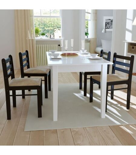 Cet ensemble, composé de 4 chaises de salle à manger en bois de style classique, sera un excellent supplément à votre salle à manger ou à votre cuisine. Les dossiers carrés leur donnent un charme rustique et ajoutent à votre confort d'assise avec le siège rembourré, recouvert de polyester lisse et doux au toucher. Leur construction solide en bois d'hévéa les rend stables et durables. La livraison comprend 4 chaises de salle à manger. Couleur : marron Matériau : bois d'hévéa massif Dimensions totales : 44 x 45 x 81 cm (l x P x H) Largeur du siège : 40,5 cm Profondeur du siège : 40,5 cm Hauteur du siège à partir du sol : 45 cm La livraison comprend 4 chaises Matériel: Polyester: 100% ...