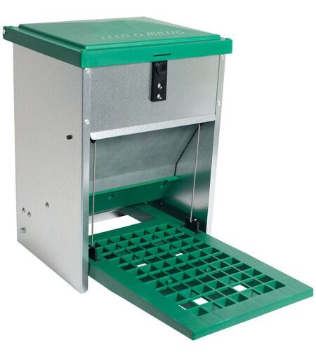 Description générale Cette mangeoire automatique Feedomatic est conçue pour offrir une solution pratique et efficace pour nourrir vos poules, canards et faisans. Grâce à son système de pédale, la nourriture est distribuée de manière contrôlée, évitant ainsi le gaspillage et protégeant l'aliment des nuisibles et des intempéries. Spécifications techniques Capacité : 5 kg Matériau : tôle galvanisée de 1 mm, résistante aux intempéries et aux UV Dimensions : 27,5 x 23 x 39,5 cm Poids minimal réglable pour l'ouverture : 250 g Poids maximal réglable pour l'ouverture : 2 kg Équipée d'une trappe anti-nuisibles Compatibilité et accessoires Convient pour les poules, canards, faisans et autres volailles Installation Facile à installer dans tout espace extérieur Remplissage par le haut grâce à un couvercle à charnière Utilisation Actionnement automatique par la pression de la volaille sur la pédale Réglage de la sensibilité de la pédale selon le poids de la volaille Conserve la nourriture propre ...