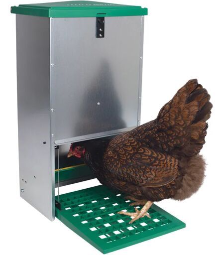 Mangeoire à trémie anti nuisibles à trémie contenance 12 kg. dimensions 33,5 X 23 X 50 cm Vous recherchez une solution efficace pour faire fuir les nuisibles (moineaux, tourterelles, rongeurs…) qui osent s’aventurer dans vos mangeoires ? Essayez cette mangeoire anti nuisible ! D’une excellente qualité, cette mangeoire est idéale pour les poules, les palmipèdes ou les faisans. Elle est fabriquée en tôle électrozinguée d’un millimètre d’épaisseur et montée sur des rivets en acier inoxydable. Elle possède également un couvercle résistant aux UV et directement monté sur une charnière avec une fermeture à clip. La forme du couvercle permet un écoulement parfait de l'eau et évite les infiltrations. La mangeoire anti nuisible est équipée d’une grille anti-gaspillage. Cela vous permet d’éviter toute perte d’aliment inutile. La partie basse à l’intérieur de la mangeoire possède des bords arrondis afin d’éviter toute accumulation d’aliment dans les coins. De cette manière, vous ne risquez pas de retrouver les aliments moisis. Ce modèle est facile à remplir car le couvercle reste en position verticale lorsque la mangeoire est ouverte. Il existe de nombreuses possibilités de réglage concernant la sensibilité de la pédale. Ainsi, vous pouvez vous adapter à tout type d’espèce. De plus, la pédale est ajourée afin d’éviter l’accumulation de fientes. En vue de la précision de la fabrication, son étanchéité est parfaite ! Caractéristiques Mangeoire anti nuisibles avec trémie, 12 kg : Dimensions : largeur 33.5 cm ; profondeur 23 cm ; hauteur 50 cm ; Contenance : 12 kg. Astuce Ducatillon : Pour que les poules sachent où se trouve leur nourriture, placer une pierre sur la pédale pendant 24 à 48h. La pierre forcera l'ouverture de la mangeoire et les poules y reviendront. Disponible également en version 20Kg sous la référence 279.0017 en version 5 kg sous la référence 283.0005 ...