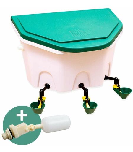 L'abreuvoir pour poules AviAqua a une capacité de 8 L et conserve l'eau de vos poules propre et fraîche . Il dispose de trois emplacements pour l'abreuvement des poules, ce qui leur confère davantage d'espace lors de l'abreuvement et un meilleur accès à l'eau. Doté d'un système de montage mural , l'abreuvoir peut s'accrocher à la hauteur adéquate pour vos animaux. Afin d'éviter que les poules ne s'assoient sur le réservoir, le couvercle de celui-ci est penché vers l'avant. Disposant d'un flotteur , cet abreuvoir se remplit automatiquement s'il est relié à un réseau d'eau basse pression ou à un réservoir à 40-50 cm en amont. Enfin, grâce à sa coloration, la lumière ne passent pas au travers de l'abreuvoir, évitant ainsi la croissance d'algues. ...