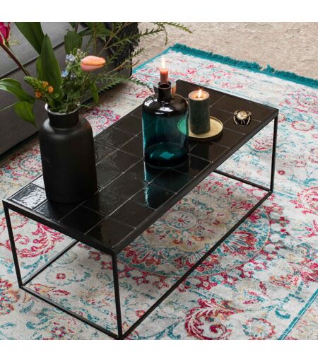 Zuiver - Table basse 93x43x36 cm avec plateau en carreaux de céramique noire
