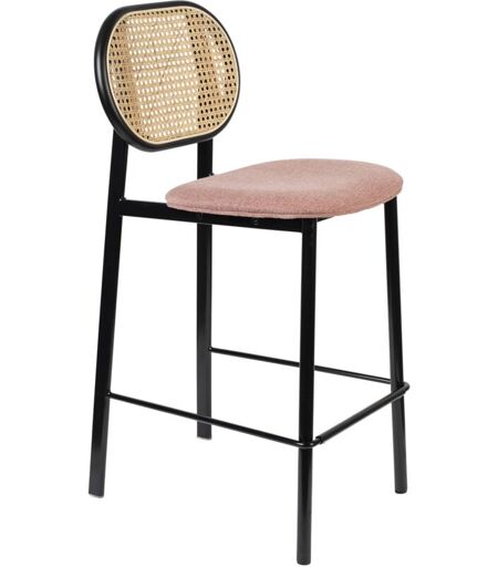 Zuiver - Chaise de bar H65 cm en tissu rose et rotin - spike