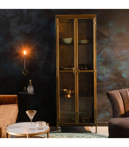 Dutchbone - Vitrine 2 portes 63,5x41,5x184 cm en métal finition laiton vieilli