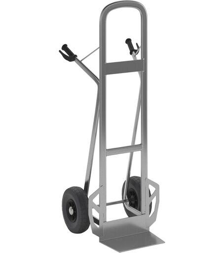 Diable professionnel NST300, aluminium, pneumatiques 260 x 85 mm. Produit livré = monté. Force = 350 kg. Largeur bavette = 285 mm. Profondeur bavette = 240 mm. Bandages = pneumatiques. Diamètre roues = 260 mm. Roulement = roulement à rouleaux. Largeur roues = 85 mm. Matériau = aluminium. Coloris = argent alu. Hauteur = 1380 mm. Largeur = 505 mm. Profondeur = 500 mm. Poids = 8.6 kg. Type de produit = diables soudés. Roues protégées. Poignées sécurité en caoutchouc. Transport aisé de charges lourdes. ...