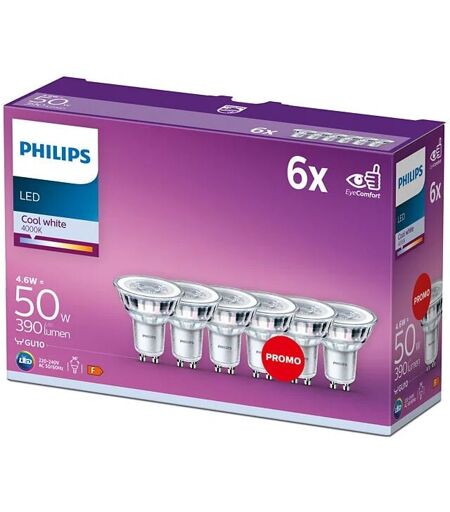 Maisange - Lot de 6 ampoules led GU10 PAR16 4.6W = 50W 390lm 4000K neutre 36° philips