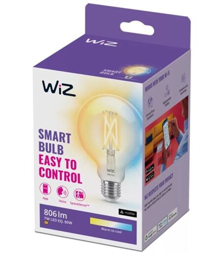 Modernisez votre éclairage décoratif grâce à cette ampoule connectée WiZ au format standard E27, délivrant un flux lumineux d’environ 806 lm (équivalent 60 W) et permettant d’ajuster la lumière du blanc chaud au blanc froid selon vos besoins. Installation simplifiée : vissez-la, connectez-la à votre réseau Wi-Fi sans hub additionnel, puis contrôlez-la via l’application WiZ, votre interrupteur ou la commande vocale avec Amazon Alexa, Google Assistant ou Apple HomeKit. Elle offre un réglage fluide de l’intensité, la création de scénarios personnalisés, ainsi que le suivi de la consommation énergétique depuis l’application WiZ pour optimiser votre usage au quotidien. Design raffiné avec corps clair, technologie connectée avancée : cette ampoule WiZ combine style, simplicité et performance pour illuminer votre intérieur avec intelligence. ...