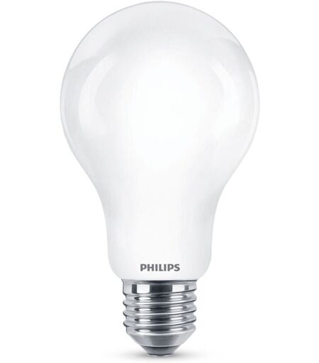 Ampoule Led Standard E27 17,5w 2452lm 2700k Lumière Chaude. Taille: Ø7,5x12,1cm (diamètre/hauteur) 15000h. Ac 220-240v Classe Énergétique D Verre Mat, Non Gradable, Irc:80 Classe D. Angle D'ouverture 360°. Équivalence: 150w. Philips ...