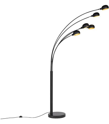 QAZQA Lampadaire design noir 5 lumières - Sixties Marmo Vidéo Ce lampadaire est une véritable pièce de design dans votre maison! Il s’intégrera parfaitement à un intérieur moderne. Avec une hauteur totale de 215,5cm et une longueur de 124cm, il attire tous les regards! Le lampadaire a une base en marbre (diamètre 35cm) et une magnifique couleur noire, ce qui le rend très intemporel. Il est doté de 5points lumineux. Pour chaque point lumineux, vous aurez besoin d’une ampoule à culot E14 (40W maximum). La luminosité peut être atténuée à l’aide d’un variateur externe. L’article est livré avec un cordon et une prise d’une longueur maximale de 260cm. Complétez votre intérieur avec cette lampe design et ajoutez une touche d’élégance à votre salon! Type de culot: E14. Max 5 x 40W, 230V. Convient pour: Incandescente, Halogène, LED, Economie d'énergie. Tension: 220V/230V Indice de protection: IP20. Fonctionalités supplémentaires: Luminosité variable, variateur non inclus,Oui, avec cordon et ...