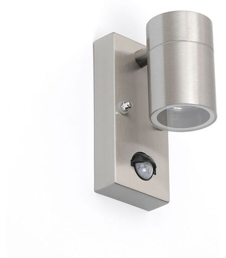 QAZQA Applique murale extérieure en acier IP44 avec détecteur de mouvement - Solo L’applique murale Solo est une lampe d’extérieur super fonctionnelle au design élégant, en acier inoxydable et équipée d’un détecteur de mouvement. Plus besoin de chercher vos clés de maison dans le noir! Solo réagit aux mouvements en allumant la lumière. La lumière de cette lampe éclaire vers le bas, créant ainsi un bel effet sur le mur. Avec un indice de protection IP44, cette applique murale est résistante à la pluie. Elle peut également être facilement connectée à 230 volts. La lampe a une profondeur de 10,5cm et une hauteur de 14,8cm. La plaque de montage mesure 14,8cm de long et 6,7cm de large. La lampe a un culot GU10 et est livrée sans ampoule, assurez-vous donc d’en commander une (35W maximum). La luminosité peut être atténuée à l’aide d’un variateur externe (non inclus). Cette applique murale Solo présente un design élégant, moderne et raffiné. Type de culot: GU10. Max 1 x 35W, 230V. Convient ...