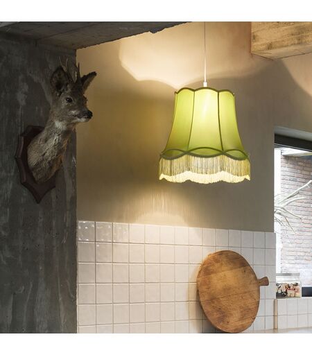 QAZQA Suspension rétro verte 45 cm - Granny Authentique dans une nouvelle veste. Cette belle suspension Granny a le design de l’abat-jour de votre grand-mère, mais avec un nouveau tissu. Cette suspension s’intègre parfaitement à tous les intérieurs car elle a quelque chose d’ancien, mais aussi quelque chose de nouveau et de moderne. La lampe a un diamètre de 45cm et une hauteur de 120cm. La plaque de montage a un diamètre de 10cm. Le cordon mesure 80cm de long. Vous pouvez compléter la lampe avec une ampoule E27 (60W maximum), mais celle-ci doit être commandée séparément. La lampe est dimmable avec un variateur externe (variateur non inclus). Le beau tissu et la belle couleur font de cette suspension Granny un véritable accroche-regard dans votre intérieur! Type de culot: E27. Max 1 x 60W, 230V. Convient pour: Incandescente, Halogène, LED, Economie d'énergie. Tension: 220V/230V Indice de protection: IP20. Fonctionalités supplémentaires: Luminosité variable, variateur non inclus,Non, ...