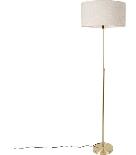 QAZQA Lampadaire réglable doré avec abat-jour gris clair 50 cm - Parte Le lampadaire Parte Fabric est un véritable incontournable pour un intérieur design. Il est fini en or avec une couleur gris clair et fait d'acier avec du tissu. Le lampadaire a un diamètre de 50 cm et une hauteur de 173 cm. Pratique : Parte Fabric est réglable en hauteur jusqu'à un minimum de 128 cm. N'oubliez pas de commander une ampoule séparée avec un culot E27. Celle-ci n'est pas incluse. Cette lampe est livrée avec un cordon et une prise. Le cordon mesure 240 cm de long. Parte Fabric est dimmable, le variateur n'est pas inclus. Décidez vous-même de l'ambiance que vous souhaitez créer en atténuant le lampadaire. Parte Fabric est un véritable gagnant. Avec ce lampadaire, vous aurez toujours la bonne ambiance dans votre maison. Type de culot: E27. Max 1 x 60W, 230V. Convient pour: LED. Tension: 220V/230V Indice de protection: IP20. Fonctionalités supplémentaires: Luminosité variable, variateur non inclus,Oui, ...
