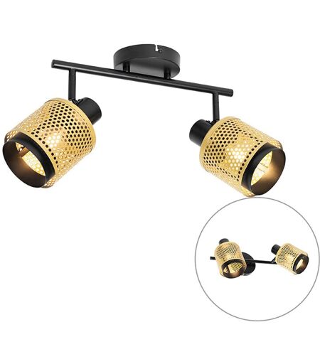 QAZQA Kayden - Spot mural et plafond - 2 lumière - l 57 cm - Noir et Or - Rustique - éclairage intérieur - Salon i Chambre i Cuisine i Salle à manger