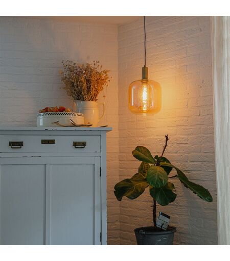 QAZQA Suspension design noire avec laiton et verre ambré - Zuzanna Rehaussez votre intérieur avec le look raffiné de la suspension Zuzanna. Fabriquée en verre et avec une finition dorée, cette lampe est un élément essentiel d’un intérieur design. Avec un diamètre de 25 cm et une hauteur de 150 cm, la suspension ajoutera une touche d’élégance à n’importe quelle pièce. La lampe est dotée d’un culot E27 (40W maximum) ; n’oubliez pas de commander l’ampoule séparément. Créez une ambiance particulière dans votre intérieur en atténuant la lumière de la suspension. Cette suspension peut être atténuée à l’aide d’un variateur externe (non inclus). Vous ne vous lasserez jamais de la Zuzanna : un véritable bijou qui ne doit pas manquer à votre intérieur! Idéale pour créer un éclairage élégant et d’ambiance dans le salon, la cuisine ou la salle à manger. Type de culot: E27. Max 1 x 40W, 230V. Convient pour: LED. Tension: 220V/230V Indice de protection: IP20. Fonctionalités supplémentaires: ...