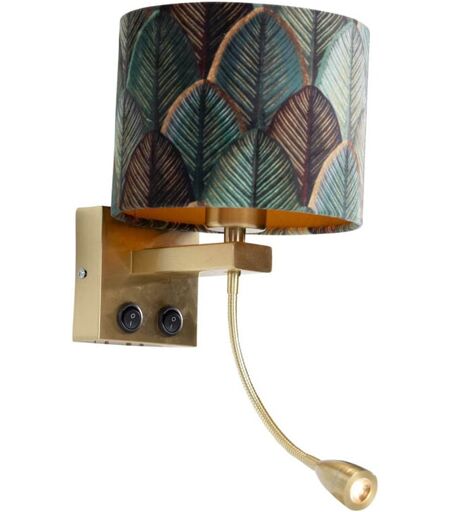 QAZQA Applique murale bronze avec abat-jour en velours, motif feuilles et intérieur doré - Brescia Combi Brescia Combi – applique murale élégante et naturelle L'applique murale Brescia Combi est un mélange parfait de luxe et de fonctionnalité. La finition bronze rayonne d'élégance, tandis que l'abat-jour en velours avec motif feuilles crée une atmosphère chaleureuse et naturelle dans la maison. L'intérieur doré de l'abat-jour rehausse l'effet lumineux et ajoute une touche de luxe supplémentaire. Particularité de cette lampe: la liseuse flexible avec éclairage LED intégré, idéale pour une utilisation près du lit ou dans un coin salon. Grâce aux deux interrupteurs séparés, vous pouvez choisir la source lumineuse que vous souhaitez allumer. Apportez une touche de nature et d'élégance à votre intérieur avec l'applique murale Brescia Combi! Type de culot: E27. Max 1 x 1W, 2V. Convient pour: LED. Tension: 220V/230V Indice de protection: IP20. Fonctionalités supplémentaires: Pas ...