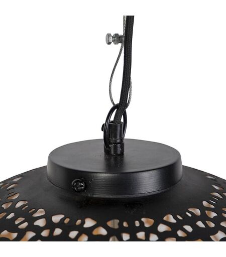 QAZQA Suspension orientale noire avec dorure 45 cm - Radiante Avec sa finition noire et dorée, la suspension Radiante est un vrai régal pour les yeux! Un véritable atout pour votre couloir ou au-dessus de votre table à manger. Elle apporte une véritable ambiance orientale à votre intérieur. La hauteur de la lampe est réglable: de 77,5cm minimum à 170cm maximum. Très pratique pour déterminer la hauteur de la lampe au-dessus de la table à manger! Son diamètre est de 45cm. La suspension est compatible avec une ampoule E27 (40W maximum). Cette ampoule doit être commandée séparément. La plaque de montage a un diamètre de 12cm. La suspension est compatible avec un variateur externe: vous pouvez ainsi créer une ambiance encore plus cosy dans votre intérieur. Grâce à sa couleur noire et à sa finition intérieure dorée, elle s’intègre parfaitement dans un intérieur rétro ou oriental et chaleureux. Un bel effet lumineux garanti! La suspension Radiante fait également sensation dans un bureau. ...