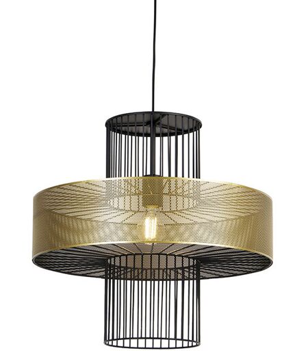 Tess - Suspension - 1 lumière - ø 50 cm - Noir et Or - Design - éclairage intérieur - Salon i Chambre i Cuisine i Salle à manger - Qazqa