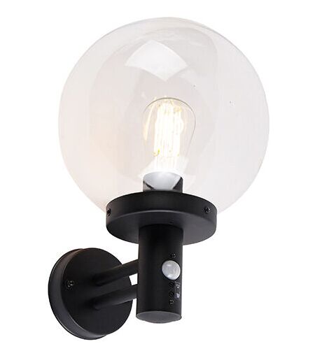 Sfera - Applique murale avec détecteur - 1 lumière - l 230 mm - Noir - Moderne - éclairage extérieur - Qazqa