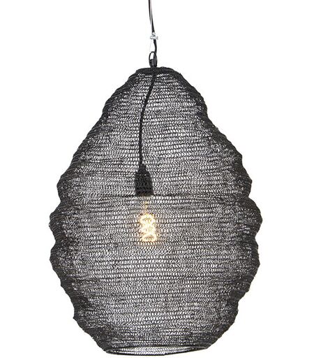 QAZQA Suspension orientale noire 45 cm - Nidum L Notre suspension Nidum donnera à votre intérieur une ambiance orientale! Finition en acier noir, laissant l’ampoule apparente. Un bel effet sur le mur et le plafond. Cette suspension est magnifique au-dessus de votre table à manger ou dans le couloir. Votre chambre à coucher gagnera également une touche orientale avec cette suspension Nidum. Hauteur totale de 182,5cm, que vous pouvez raccourcir à 92,5cm minimum lors de l’installation. La plaque de montage pour le plafond a un diamètre de 13cm. L’abat-jour a un diamètre de 45cm et, grâce à sa forme, donne à la lampe un effet ludique. La suspension Nidum est équipée d’une grande douille E27 et est livrée sans ampoule, pensez donc à en commander une séparément (40W maximum). L’ampoule est visible dans cette lampe, choisissez donc une variante saisissante, comme une ampoule LED à filament. Vous pouvez également atténuer l’éclairage de la lampe avec un variateur externe pour une ambiance ...