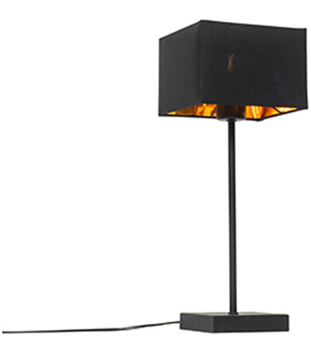 QAZQA Lampe de table moderne abat-jour en tissu noir avec or - VT 1 Les lampes de table dans une pièce créent vraiment l’ambiance, en particulier cette VT 1! Elle vous permet de créer des coins cosy avec juste ce qu’il faut de lumière. VT 1 est en acier et en tissu, avec une finition noire. L’intérieur de l’abat-jour est en or, ce qui vous donne un effet d’éclairage chaud lorsque la lumière est allumée. Elle mesure 17cm de long, 17cm de large et 44cm de haut. La base mesure 12cm de long, 12cm de large et 2cm de haut. VT 1 est livrée avec un cordon (200cm) et une prise. Vous pouvez compléter la lampe de table avec une ampoule E27 (60W maximum). Veillez à la commander séparément sur la boutique en ligne. L’éclairage peut également être atténué avec un variateur externe, qui n’est pas inclus. VT 1 est parfaite sur une table de chevet, un buffet ou dans le salon. Elle trouve parfaitement sa place dans un intérieur moderne. La lampe de table VT 1 est exactement ce que vous recherchez! Type ...