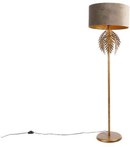 QAZQA Lampadaire vintage doré 145 cm avec abat-jour en velours taupe 50 cm - Botanica Vidéo Le lampadaire Botanica est un véritable atout pour votre intérieur! Sa couleur dorée et son abat-jour taupe en font un élément élégant. Les feuilles dorées sur le luminaire créent un effet ludique. La lampe est en acier et est finie en or. L’abat-jour est en coton et est taupe. Botanica a une hauteur de 165cm et un diamètre de 50cm. L’abat-jour a un diamètre de 50cm et une hauteur de 25cm. La base a un diamètre de 32cm. Cet article est livré avec un cordon (260cm) et une prise. Pour compléter la lampe, assurez-vous de commander séparément une ampoule avec un culot E27 (60W maximum). La lampe est dimmable avec un variateur externe, qui n’est pas inclus. Parce que l’intérieur de l’abat-jour est doré, vous obtenez une sensation de chaleur dans la pièce car la lumière se reflète dessus. Ce lampadaire vintage ne doit pas manquer dans votre intérieur! Type de culot: E27. Max 1 x 60W, 230V. Convient ...