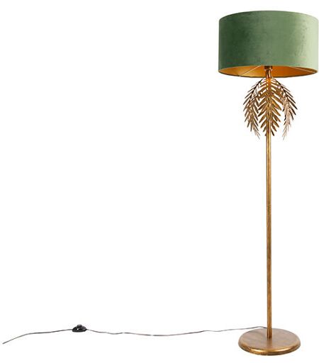 QAZQA Lampadaire doré 145 cm avec abat-jour en velours vert 50 cm - Botanica Vidéo On est déjà fans! Le lampadaire Botanica est un véritable atout pour votre intérieur. Son abat-jour en velours vert et son pied doré attirent immédiatement le regard. Et bien sûr, les feuilles dorées apportent une touche vintage ou Art Déco supplémentaire. Idéal pour créer une ambiance dans la chambre à coucher ou pour attirer l’attention dans le salon. Le lampadaire mesure 165cm de haut et 50cm de diamètre. Sa base mesure 32cm de diamètre. L’abat-jour en velours mesure 50cm de diamètre et 25cm de haut. Vous pouvez compléter votre Botanica avec une ampoule à culot E27 (60W maximum). La luminosité peut être atténuée à l’aide d’un variateur externe, qui n’est toutefois pas inclus. Ce modèle est livré avec un cordon (260cm) et une prise. Vous recherchez un élément original pour votre intérieur? Alors Botanica est fait pour vous! Type de culot: E27. Max 1 x 60W, 230V. Convient pour: Incandescente, Halogène, ...