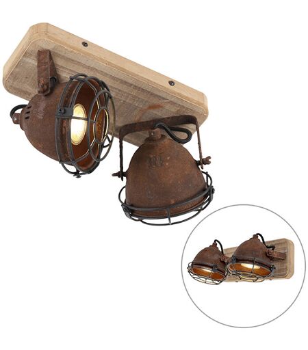 QAZQA Gina - led Spot plafond, plafonnier - 2 lumière - l 29 cm - Brun rouille - Rustique - éclairage intérieur - Salon i Chambre i Cuisine i Salle à
