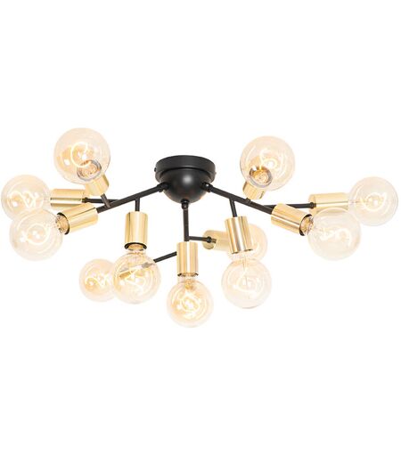 Qazqa - juul - Plafonnier - 12 lumière - ø 75 cm - Noir et Or - Design - éclairage intérieur - Salon i Chambre i Cuisine i Salle à manger