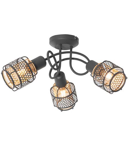 Noud - Plafonnier - 3 lumière - ø 50 cm - Noir et Or - Design - éclairage intérieur - Salon i Chambre i Cuisine i Salle à manger - Qazqa