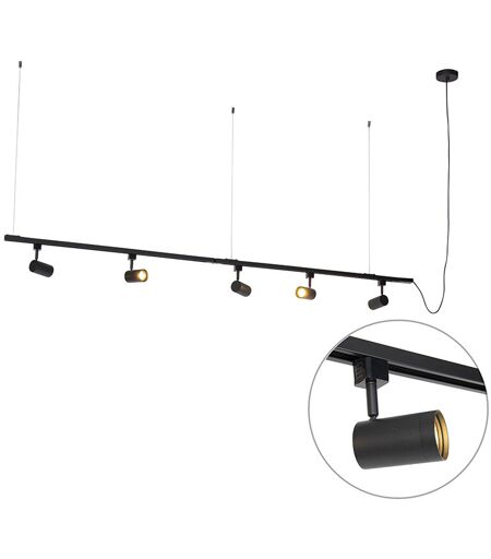 QAZQA Système sur rail suspendu moderne monophasé avec 5 spots noirs - Jeana Ce système sur rail Jeana avec cinq spots sur rail modernes est un véritable atout pour votre intérieur! Ce système sur rail noir est en acier. Le rail mesure 193cm de long et 3,5cm de large. La plaque de montage mesure 2,5cm de haut et a un diamètre de 10cm. Les abat-jour ont un diamètre de 5,5cm et une longueur de 9,5cm. La lampe est fournie sans les 5 ampoules GU10 nécessaires, celles-ci doivent être commandées séparément. Cette lampe est dimmable avec un variateur externe, qui n’est pas inclus. Ces spots sont monophasés, ce qui signifie que toutes les sources lumineuses du rail sont commandées ensemble et donc toujours atténuées ou allumées ensemble. Complétez votre intérieur avec le système sur rail Jeana. Type de culot: GU10. Max 5 x 50W, 230V. Convient pour: LED. Tension: 220V/230V Indice de protection: IP20. Fonctionalités supplémentaires: Luminosité variable, variateur non inclus,Non, sans cordon ni ...