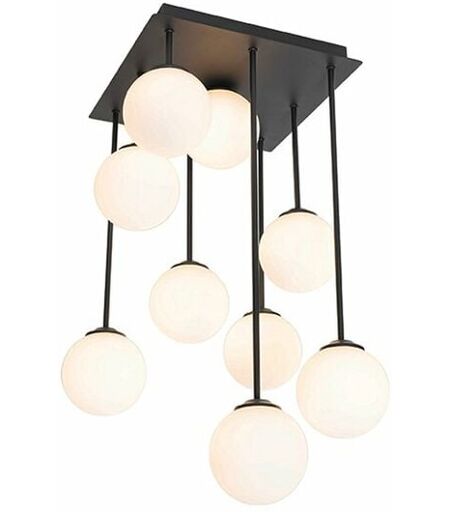 QAZQA Plafonnier moderne noir avec verre opale 9 lumières - Athènes Vous recherchez un plafonnier moderne pour votre maison ? Alors Athènes est fait pour vous! Avec ses 9 ampoules différentes, c’est une lampe ludique et moderne! Elle est en acier avec du verre et est finie en noir. Les abat-jour en verre opale garantissent que la lumière ne brille pas directement dans les yeux, mais qu’elle se diffuse progressivement dans toute la pièce. Le plafonnier a une largeur de 31cm, une hauteur de 55,5cm et une longueur de 31cm. La plaque de montage a une hauteur de 2,5cm, une longueur de 24cm et une largeur de 24cm. Vous pouvez compléter Athènes avec 9 ampoules à culot G9 de 28watts maximum. N’oubliez pas de les commander séparément. Cette lampe de plafond gaie s’intègre parfaitement dans le salon, la salle à manger ou la chambre à coucher! Type de culot: G9. Max 9 x 28W, 230V. Convient pour: Halogène, LED. Tension: 220V/230V Indice de protection: IP20. Fonctionalités supplémentaires: ...