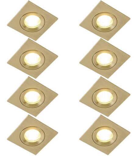 QAZQA Xena Spot encastrable - lot de 8 - 8x8cm - IP44 - Carré - Laiton (doré)