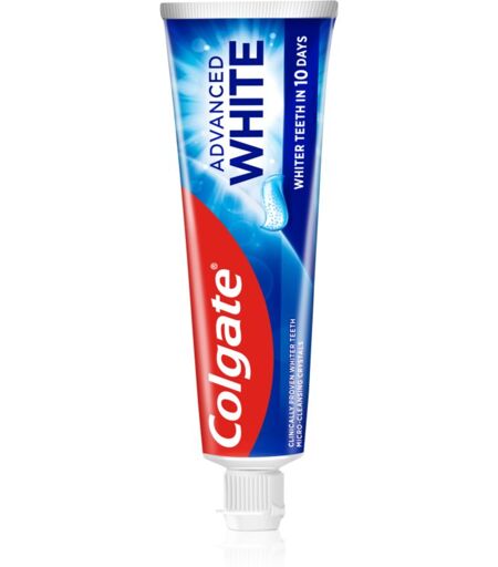 Colgate Advanced White, 125 ml, Dentifrices blanchissants mixte, Le dentifriceColgate Advanced White est conçu pour délicatement blanchir vos dents. Son utilisation régulière supprime efficacement la pigmentation dentaire, elle vous rend votre sourire radieux. Le produit : blanchit les dents rafraîchit l’haleine Mode d’emploi : Utilisez au moins 2 fois par jour. Nettoyez vos dents minutieusement pendant au moins 2 minutes. ...