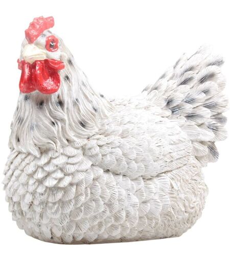 JARDINDECO Poule couvant en résine coloris blanc 24 x 18 x 20 cm