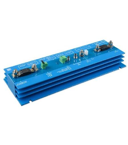 Le Smart BMS 12/200 est un système de gestion de batterie tout-en-un pour les batteries Smart au phosphate de lithium-fer (LiFePO4) de Victron. Il a été spécialement conçu pour s'intégrer à des systèmes de 12 V équipés d'un générateur de 12 V , comme par exemple ceux des véhicules et des bateaux. Il combine un limiteur de courant, un coupleur de batterie et un protecteur de batterie dans une seule solution solide et compacte. Il vous permet de connecter un alternateur de 12 V (et une batterie de démarrage), quelle que soit sa taille, des charges consommatrices et des chargeurs à des batteries Smart au lithium. Le Smart BMS 12/200 surveille et protège chaque cellule individuelle de batterie au sein de la batterie (ou du parc de batteries), et il déconnectera l'alternateur, les sources de charge ou les charges CC en cas de surchauffe ou de tension faible ou élevée sur les cellules de batterie. Le point de connexion spécifique pour l'alternateur permet de limiter le courant et de fournir ...