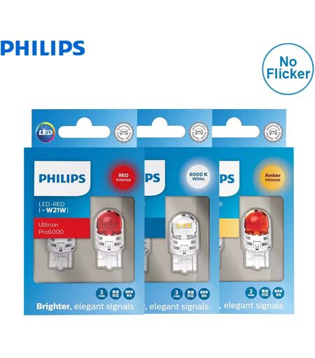 Philips Ultinon Pro6000 LED W21W WY21W 7440 T20 blanc rouge ambre un Contact voiture feux de recul brouillard clignotant pas de Flash