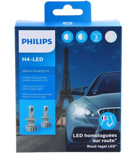 2 H4 Led Ultinon Pro Première ampoule pour éclairage avant H7-LED homologuée sur la route* pour la France ! Transformez la nuit en jour avec Philips Ultinon Pro6001 H7-LED ! Conduisez comme jamais auparavant grâce aux premières lampes LED pour éclairage avant homologuées sur voie publique* en France Avec leur éclairage jusqu'à 230 % plus lumineux** et leur faisceau blanc proche de la lumière du jour, ces lampes LED éclairent parfaitement la route devant vous sans éblouir les autres conducteurs *La lampe est homologuée sur voie publique en France pour certains modèles de véhicules Pour plus d'informations, visitez la page Philips fr/LEDhomologation Lampe LED homologuée sur voie publique* Jusqu'à 230 % de luminosité en plus** Éclairage fiable et meilleure visibilité Faisceau lumineux proche de la lumière du jour pour une conduite confortable Design compact tout-en-un pour une installation facile Une durée de vie pouvant atteindre 3 000 heures L'éclairage automobile Philips : un niveau ...