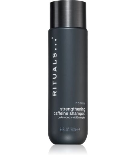 Rituals Homme, 250 ml, Shampoings pour homme, Le shampooing Rituals Homme nettoie efficacement le cuir chevelu, il lave parfaitement les cheveux et leur redonne leur beauté naturelle. Le produit : freine la perte prématurée des cheveux renforce la fibre capillaire régénère et nourrit les cheveux Mode d’emploi : Appliquez une quantité raisonnable de shampooing sur les cheveux mouillés. Faites mousser, puis rincez abondamment. ...