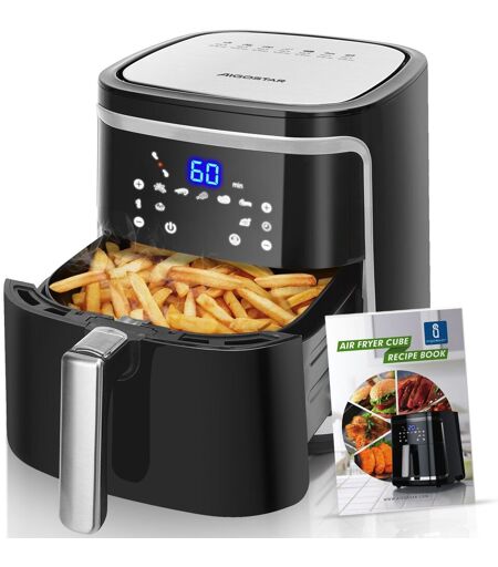 Aigostar Cube - Friteuse à air sans huile de 7L, 1900W. 7 préprogrammes, mode manuel et fonction maintien au chaud. Panneau tactile LED. Utilisation dans panier ou tiroir. Livre de recettes inclus.