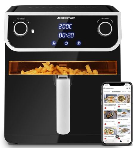 Aigostar - Friteuse à air XXL 8L, Friteuse sans huile avec fenêtre d'affichage, 1700 W, 12 fonctions prédéfinies + manuel, écran tactile LED, double utilisation : avec panier ou tiroir