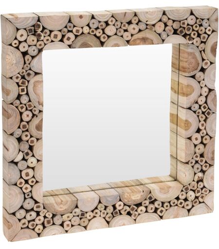 Home Styling - Miroir mural en bois, miroir mural carré - bois de teck, 50 x 50 cm