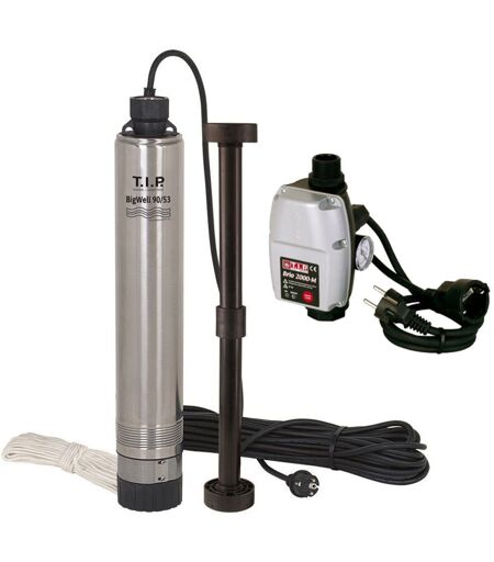 T.i.p. - BigWell 90/53 + Système de contrôle électronique Pompe de Forage - 5.400 L/u - 900W - Hauteur de refoulement 53 m - Inox - Pompe immergée