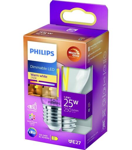 Philips - led 871951432419000 led cee d (a - g) E27 forme de goutte 2.5 w = 25 w blanc chaud (ø x l) 45 mm x 78 mm 1 pc(s) W183422