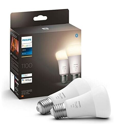 Philips Hue - White, ampoule led connectée E27, Equivalent 75W, 1100 lumen, Compatible Bluetooth, Pack de 2, fonctionne avec Alexa, Google Assistant