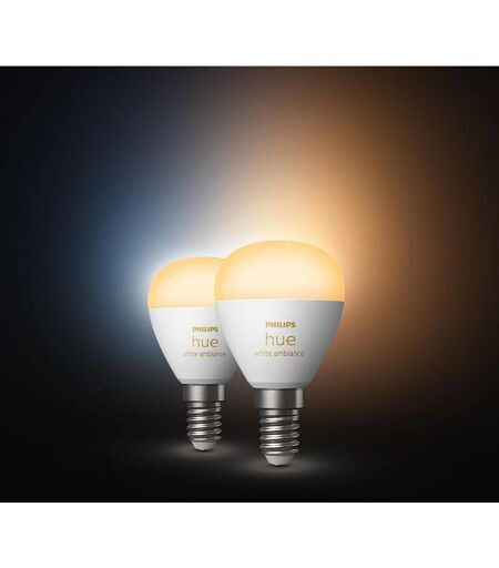 Philips Hue - White Ambiance, lot de 2 ampoules led connectée 5.1W E14 Luster, compatible Bluetooth, fonctionne avec Alexa, Google Assistant et Apple