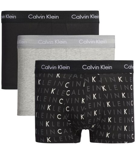 Boxers Calvin Klein, lot de 3 Composition : 95% Coton, 5% Élasthanne Noir, gris chiné et noir fantaisie Élastique blanc au niveau de la taille, coupe fermée Logos noirs sur la longueur de l'élastique ...