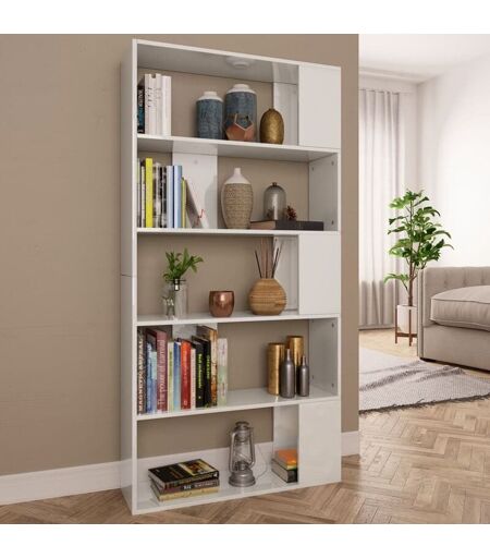 VIDAXL Bibliothèque de division avec 5 grands compartiments dans le salon en bois mobile diverses couleurs Couleur : blanc brillant