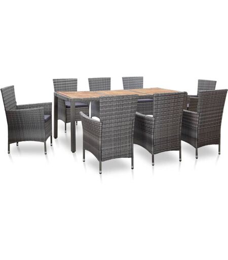 vidaXL Mobilier À Dîner De Jardin 9pcs Et Coussins Résine Tressée Gris