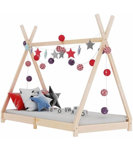 Créez le refuge ultime dans la chambre de vos enfants avec notre cadre de lit fantastique ! Le lit présente un cadre croisé innovant inspiré des tentes de style tipi cool où vous pouvez accrocher des rideaux de lit pour créer de l'intimité pour votre enfant. Il peut également être utilisé comme coin lecture ou maison de jeu pour votre enfant. Fabriqué en bois de pin massif, ce cadre de lit est extrêmement robuste et durable. Les lattes résistantes offrent le soutien nécessaire et sont très confortables. Ce cadre de lit convient à un matelas de 90 x 200 cm. Veuillez noter que la livraison inclut un cadre de lit seulement ; un matelas et les rideaux ne sont pas inclus. Le lit est facile à assembler. Vous pouvez chercher le matelas correspondant dans notre boutique. Matériau : cadre en bois de pin massif et lattes en contreplaqué Dimensions totales : 208 x 98 x 154 cm (L x l x H) Dimensions du matelas correspondant : 90 x 200 cm (I x L) (matelas non inclus) AVERTISSEMENT ! Le produit ne ...