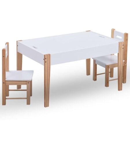 Description générale Cet ensemble de table et de 2 chaises spécial pour enfants offre un espace dédié pour jouer et travailler. Conçu avec une construction robuste en MDF et en bois de pin, recouvert d'une peinture non toxique, il convient à un maximum de deux enfants pour jouer, grignoter ou lire. Le plateau de la table est un tableau noir, idéal pour dessiner, et il y a un espace de rangement supplémentaire sous le plateau. Ce mobilier simple et adapté aux enfants est parfait pour une salle de jeux, une chambre ou un salon. Spécifications techniques Couleur : noir et blanc Matériau : MDF et bois de pin Dimensions de la table : 90 x 60 x 51 cm (L x l x H) Dimensions de la chaise : 28 x 25,5 x 55 cm (l x P x H) Peinture non toxique Surface lisse pour un nettoyage facile Dessus de tableau noir Table avec espace de rangement supplémentaire Charge maximale : 50 kg Âge recommandé : 6 à 12 ans Compatibilité et accessoires La livraison comprend 1 table et 2 chaises Installation Ce produit ...